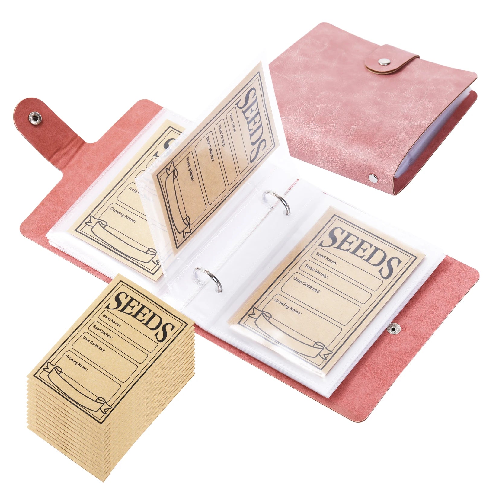 1 Set Garden Seeds Storage Organizers Seed Organizer Binder with 50pcs Self-Sealing Seed Envelopes Packet Notebook
